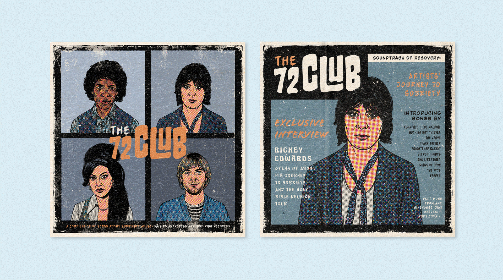 The 72 Club is a university project that explores substance abuse in the music industry through the creation of a conceptual record. Inspired by the infamous 27 Club, the title flips the narrative - encouraging artists and fans to aspire to a substance-free life and the symbolic age of 72.